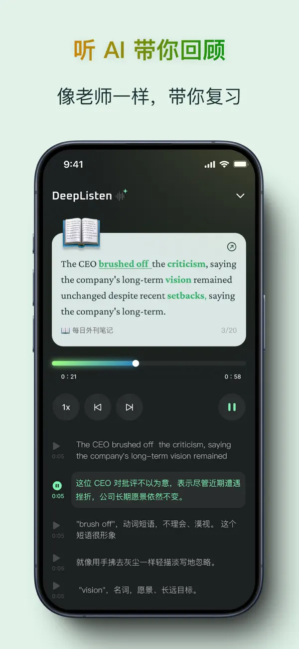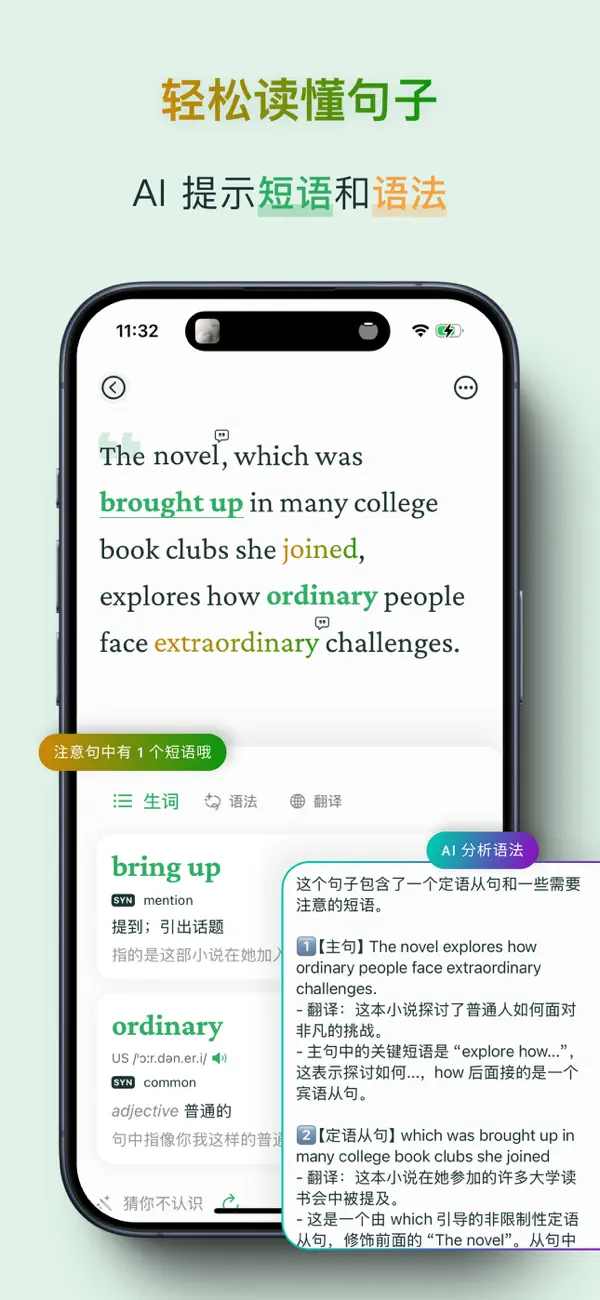 【本次更新】 - 解决卡顿的问题 - 解决 EPUB 高亮错位问题 - AI 输出翻译、单词学习等内容质量的优化 【近期更新】 - EPUB 阅读器体验全新升级 - 内置了一些名著 EPUB - 同步不同设备的文章阅读进度和首页继续阅读 - 点击语境跳转到文章对应位置