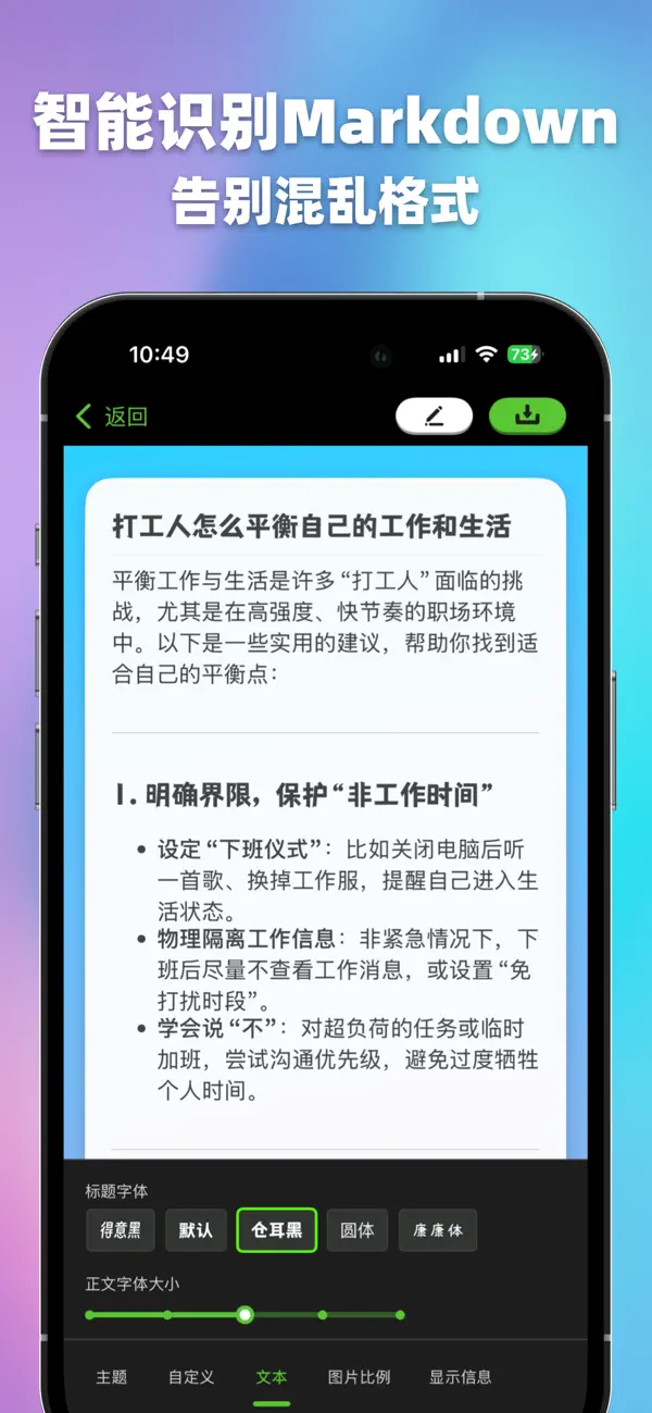 一键转换 AI 回答为精美长图! 小红书、朋友圈长文分享神器。 再也不用担心 AI 聊天回答复制的内容的#*| -符号格式乱成一团。一键处理 markdown 文本,复制粘贴回答就能生成好看的长图,再也不用手动多次截图! 多种风格流行主题,针对 AI 回答制作了多个模板。排版针对中文优化。 支持长文一键分割成多张小图,方便在小红书、朋友圈、社交平台分享。