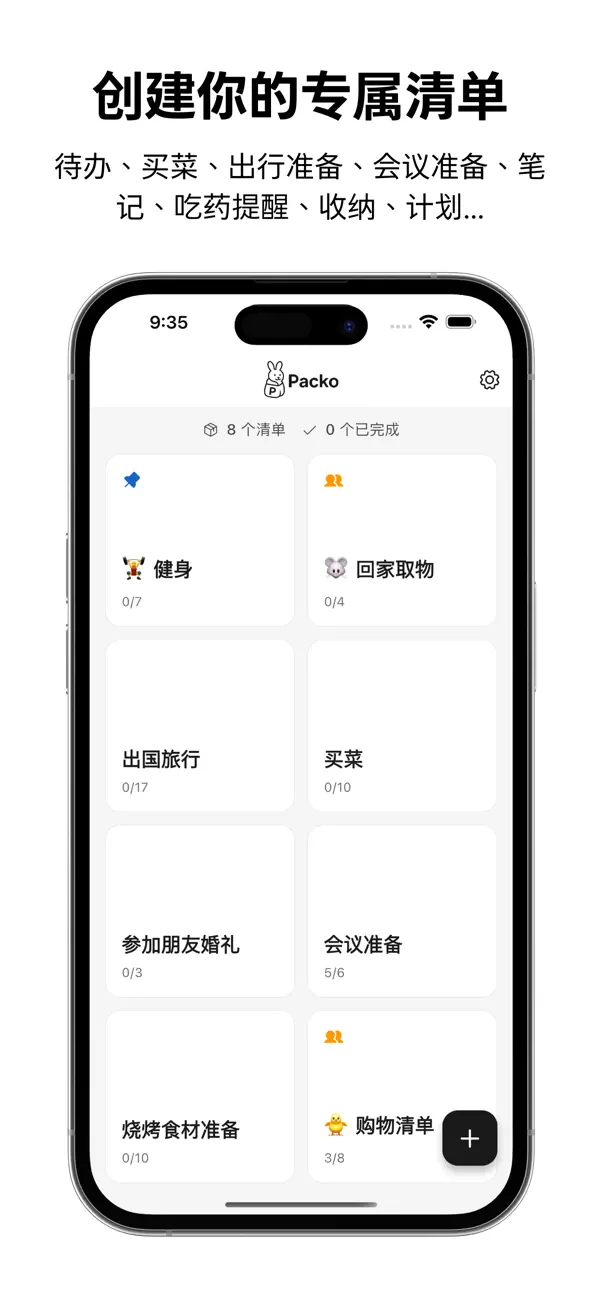 Packo - 待办清单、备忘录、记事本、提醒工具、清单共享 - Packo 五大核心功能 • 根据需求创建清单 • 与他人共享清单 • 自定义主题与清单样式 • 设定提醒时间,做好准备 • 查看清单使用统计 Packo 使用灵感 • 吃药提醒 • 每日清洁任... | 独立产品契约