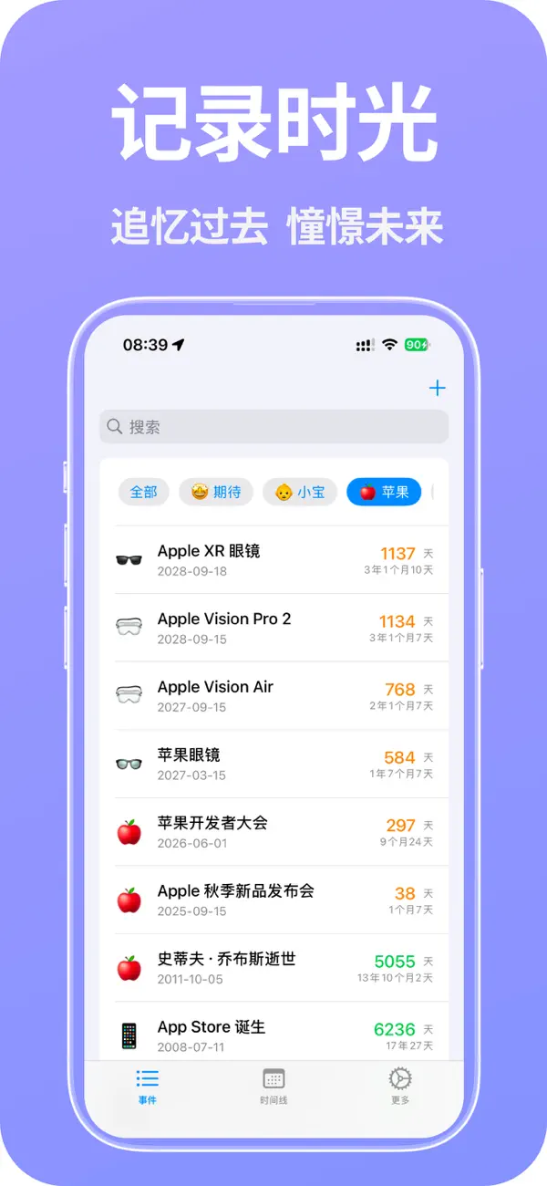 添加即将到来事件小组件