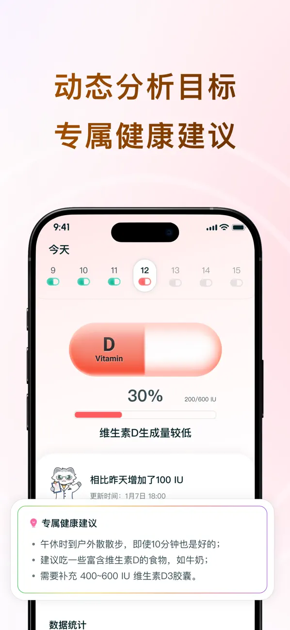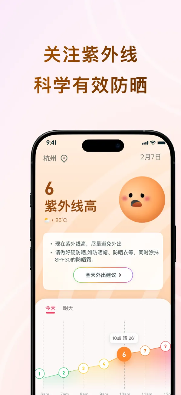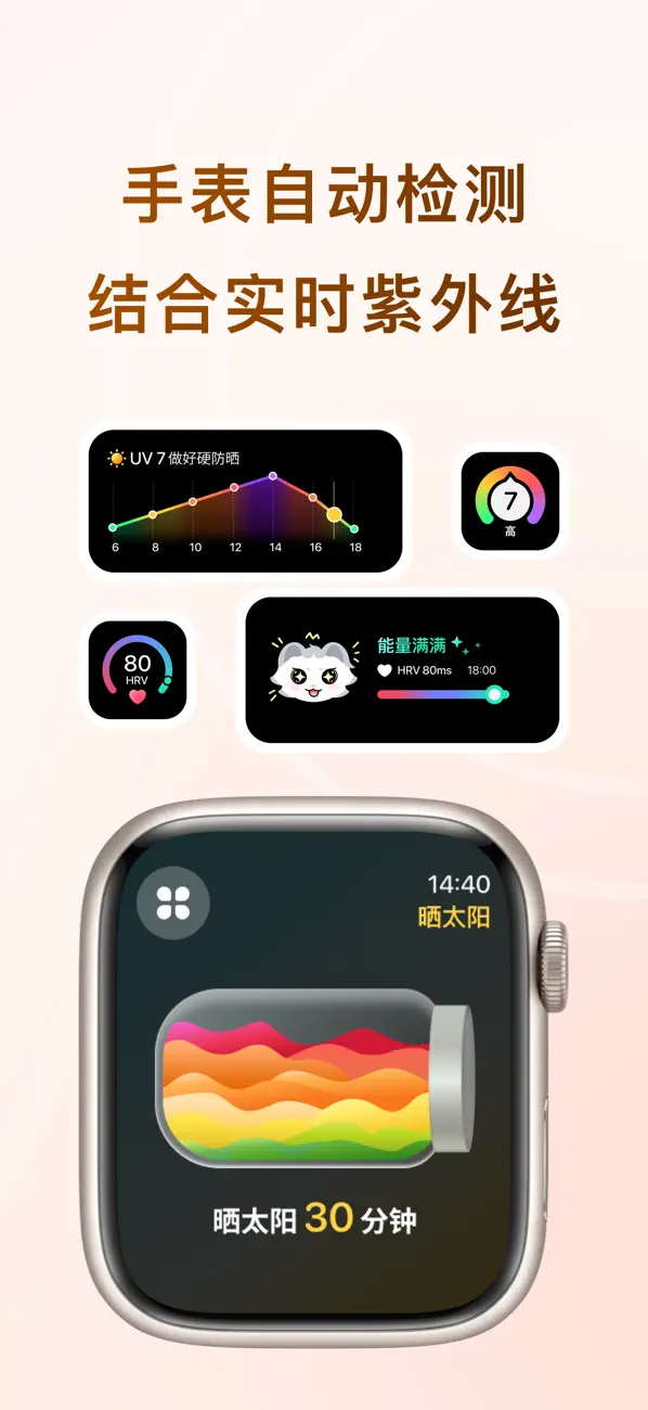 新增功能 - 紫外线页面增加防晒霜补涂能力 - 趋势分析页面增加指标说明页面 问题修复 - 紫外线高时无法有效弹出紧急提醒的问题 - 解决因为无法获取地址导致的无法计算维生素D问题 非常感谢各位用户选择SunAlly!