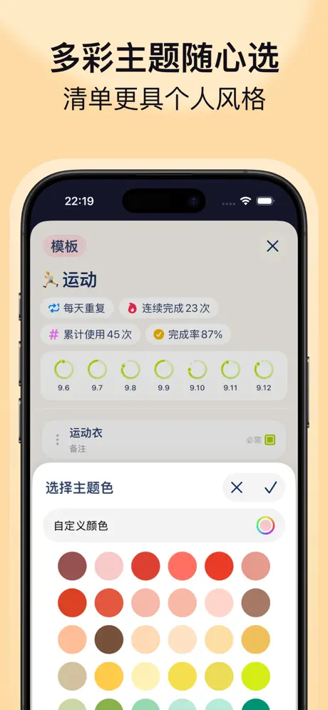 挑选你喜欢的主题色,让清单也能展现个人风格。