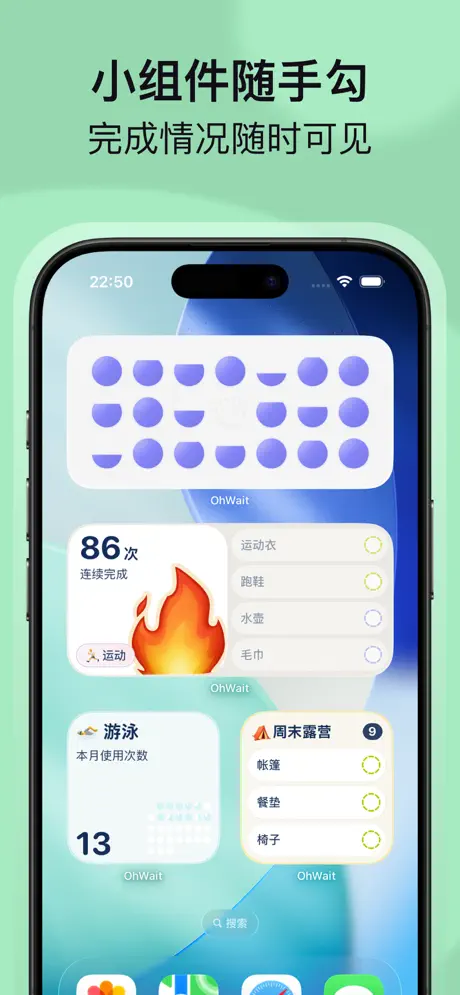 从清单开始,规划每天的小目标,见证坚持带来的改变,OhWait不仅防遗忘,还帮助你保持节奏、看到进步,轻巧、专注、刚刚好,每天都能安心掌控生活。