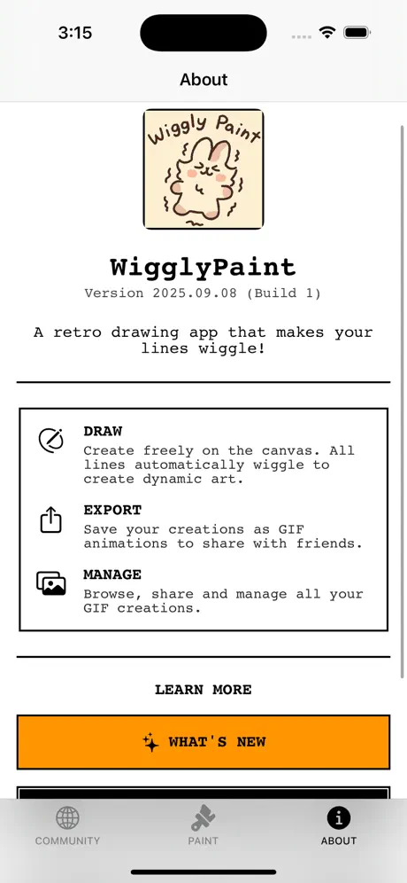 ▣▣▣ 重磅回归更新 ▣▣▣ 我们回来了!在倾听用户社区的声音后,我们提供了你们要求的功能。这是我们迄今为止最大的更新! ▣ 新功能: • 撤销/重做时光机 完整的撤销和重做堆栈终于来了!画错了?穿越回过去。想再看看?跳到未来。对动画艺术的完全创意控制。 • 无限调色板 大规模色彩扩展!不再有色彩限制。访问完整色谱,用你能想象的任何色调绘画。你的扭扭绘画变得无限多彩。 • 增强的社区画廊 改进的排名系统和坚如磐石的稳定性。无崩溃浏览来自世界各地艺术家的10,000多件动画作品。以更好的性能发现惊人的扭扭GIF创作。 ▣ Bug修复和改进: - 社区画廊现在在浏览作品时保持稳定 - 修复了导出大型动画GIF时的崩溃 - 改进了应用性能和可靠性 - 基于用户反馈的各种Bug修复 ▣ 即将推出: 更多绘画工具。更多创意功能。更多扭扭乐趣。敬请期待! ▣ 感谢我们的社区 ▣ 致我们10,000多位扭扭艺术家:你们的反馈使这次更新成为可能。你们的艺术激励着我们。你们的耐心意味着一切。 继续创作。继续扭动。继续保持创意。 如果你喜欢这次更新,请留下评价!它帮助更多艺术家发现WigglyPaint。 此致, SssAdmin 附言 - 有功能想法?发现Bug?想分享扭扭艺术?在 https://wigglypaint.io 联系我们