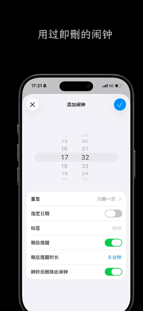 临时闹钟:会议、抢购、接人…任何一次性提醒,用完即焚,不留痕迹。