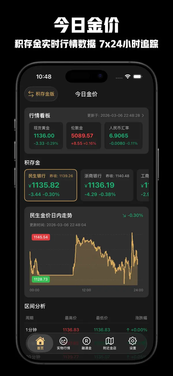 新增银行积存金专属板块,一站式覆盖主流银行积存金业务。提供实时积存金买入价、走势图及行情看板,一键对比各银行积存金价差,适配小额长短期黄金定投需求。