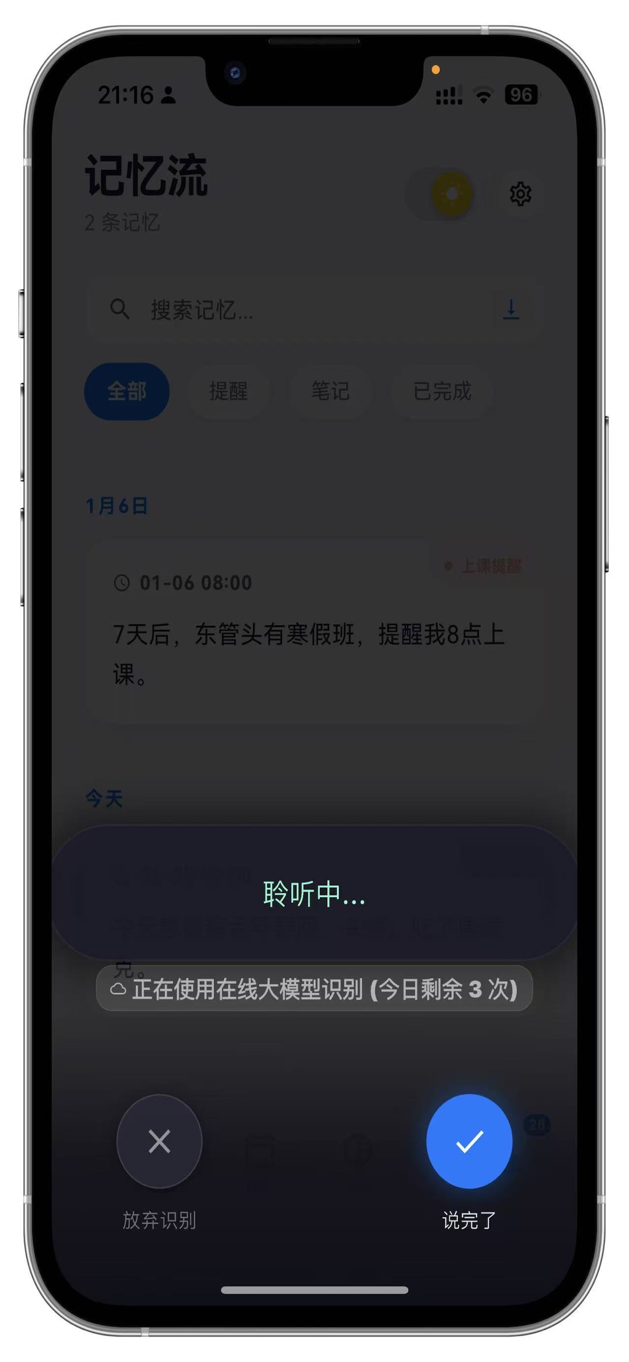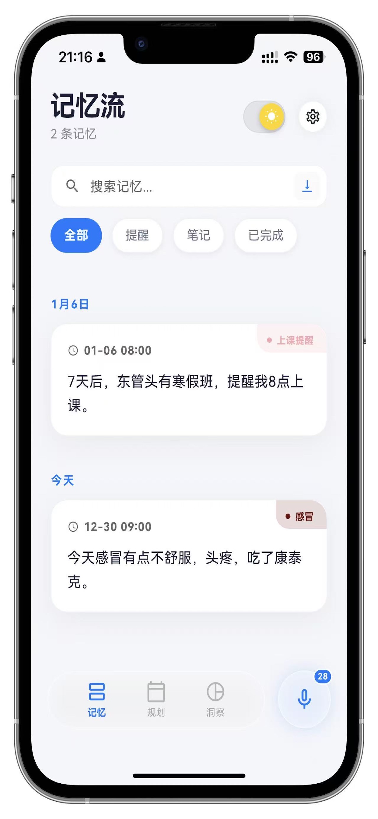 增加手工创建笔记/提醒功能;